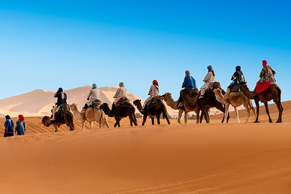 An unforgettable experience at Sahara deset, as you ride camels into the golden sea of sand dunes, spending the night under the star-studded Saharan sky.